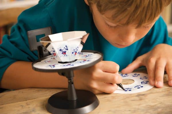 גלו את הקסם והעקרונות המדעיים שעומדים מאחורי סרטי האנימציה האהובים של דיסני! עם ערכת "סטודיו האנימציה של דיסני", הילדים מוזמנים לצאת למסע בזמן ולבנות בעצמם צעצוע אופטי קלאסי בן 100 שנה, המדגים בדיוק את הטכנולוגיה עליה מבוססת האנימציה המודרנית של ימינו. זוהי ערכת יצירה לילדים המשלבת נוסטלגיה, טכנולוגיה והמון דמיון. הערכה מאפשרת לילדים להפיח חיים בדמויות איקוניות כמו מיקי מאוס וחברים, ליצור מיני-סרטים משלהם ולהזמין חברים ובני משפחה להקרנת בכורה חגיגית. הסטודיו כולל נורת תאורה מיוחדת המאפשרת לצפות באנימציה גם בחושך, מה שמוסיף אווירה קסומה לכל חוויית האנימציה לילדים. בזכות הדיסקים הריקים המצורפים, הילדים יכולים לעצב דמויות וסיפורים פרי דמיונם, ובכך להתנסות ביצירת אנימציה לילדים מהשלב הראשון ועד להקרנה.