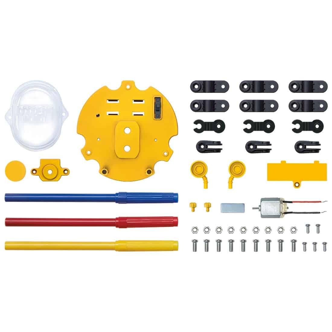 - רובוט מצייר להרכבה - מצמידים טושים לרובוט, מפעילים את המנוע והוא רוטט ונע בצורה אקראית שיוצרת ציורים ושרבוטים צבעוניים על הנייר